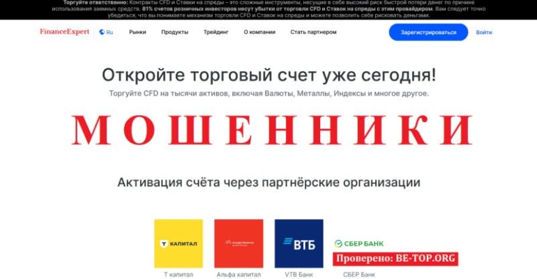Компания Finance Expert, деятельность которой станет основой сегодняшней статьи, является достаточно явным и очевидным мошенником, который скопирован с ряда других подобных ему аферистов, которые были созданы всего за несколько минут дешёвой группой и мошенников, которые пытаются подобным образом привлечь внимание наиболее наивных доверчивых клиентов, а также заполучить их средства и их доверие, которым в дальнейшем смогут довольно успешно управлять в своих собственных интересах и целях. Поскольку абсолютно ничего особенного, помимо банальных и примитивных обещаний касаемо дальнейшего успешного заработка, а также использования наиболее эффективных и уникальных торговых инструментов данная компании не представляет, стоит сразу же перейти к её характеристике, а также представлению тех негативных ее сторон, которые позволят прийти к тому заключению, что компания Finance Expert мошенник и лохотрон, работа которого не сможет принести клиентам никакой значимой пользы. Проверим отзывы Finance Expert.